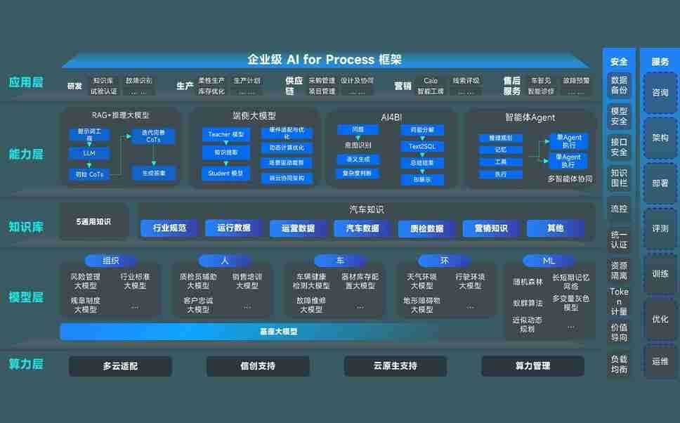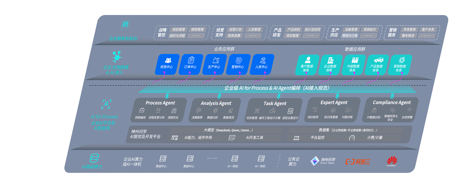 端到端的一站式AI工作空间深度融合了从企业战略规划到日常经营的全流程业务板块,,,,定向解决车企内部领域多、、、、部门多、、链条长、、、、场景碎片化等难题,,,,支持车企快速构建以AI为核心的生产力写作体系,,,实现任务执行与AI能力的无缝集成与交互