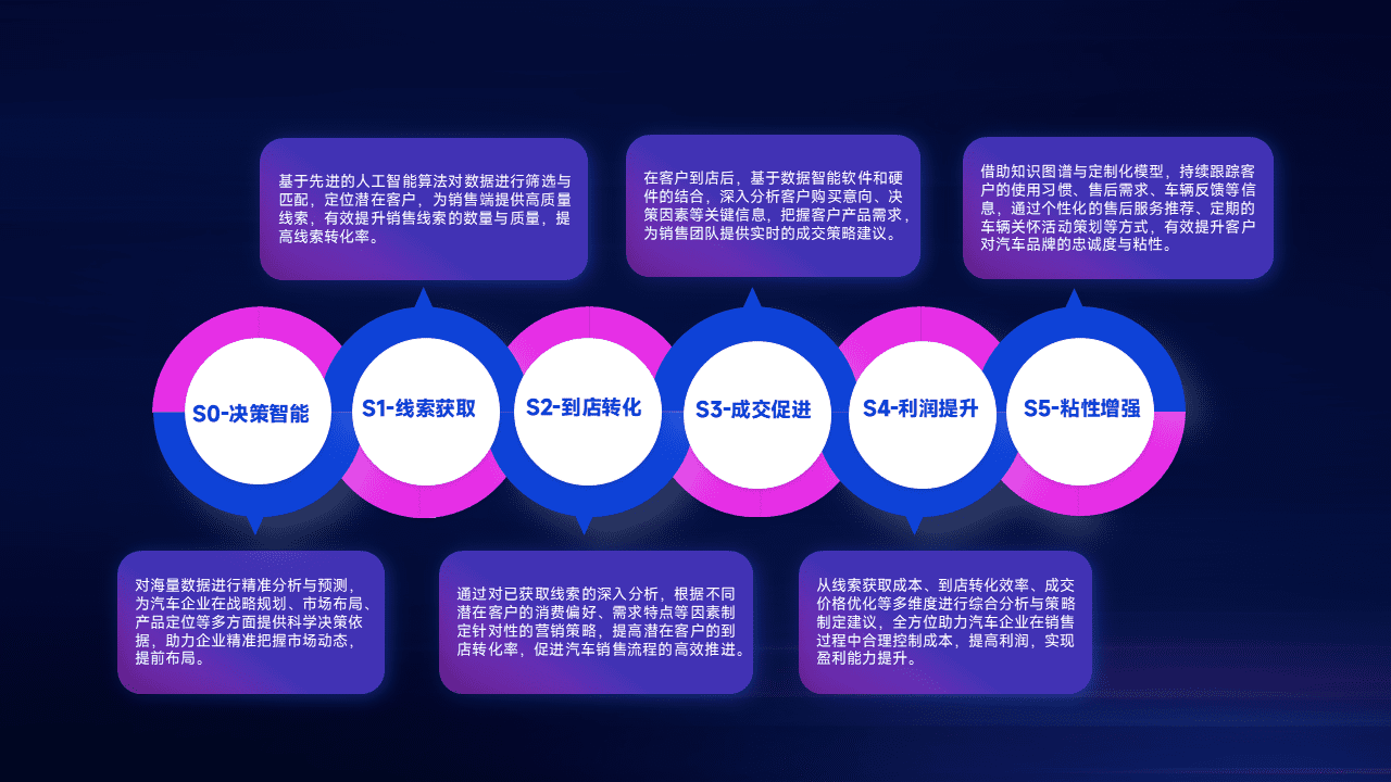 通过拓宽潜在客户来源、、优化线索分配并提高到店转化率,,,以增强销售效率。。。同时,,利用线索数据不断优化分析模型,,,有效提升转化率,,扩大营销影响力。。。